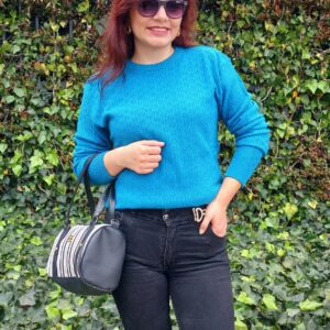 Buzo Tejido Entrelazado Azul Turquesa Mujer