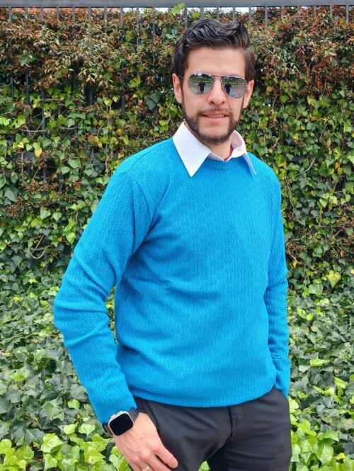 Buzo Tejido Entrelazado Azul Turquesa Hombre