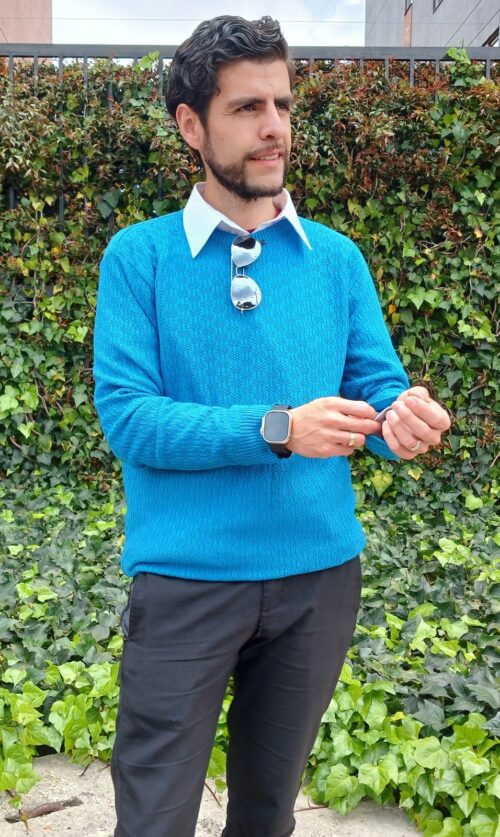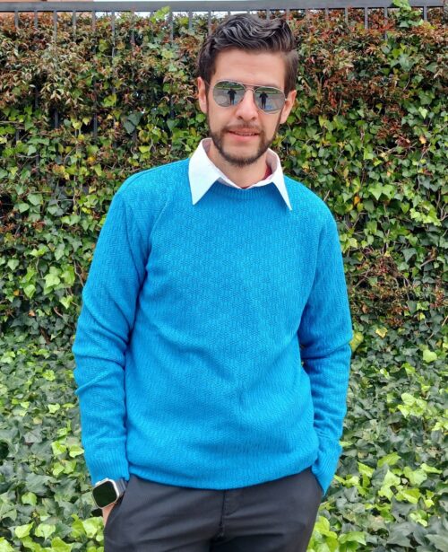 Sé el primero en valorar “Buzo Tejido Entrelazado Azul Turquesa Hombre”